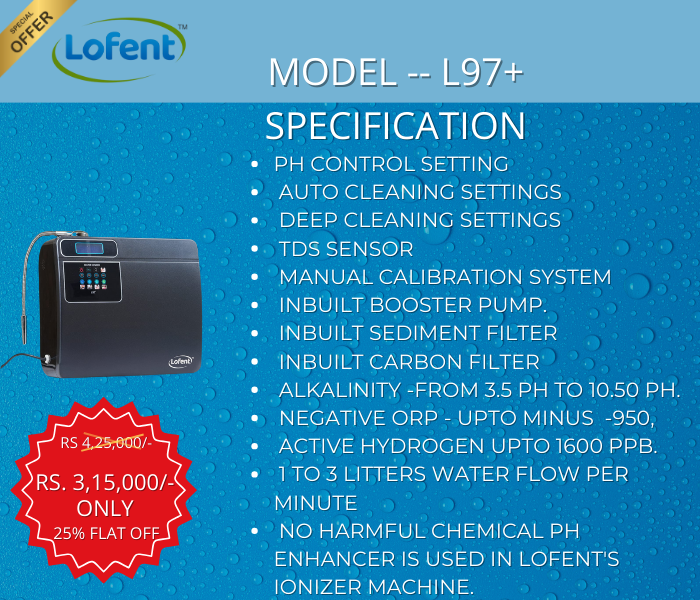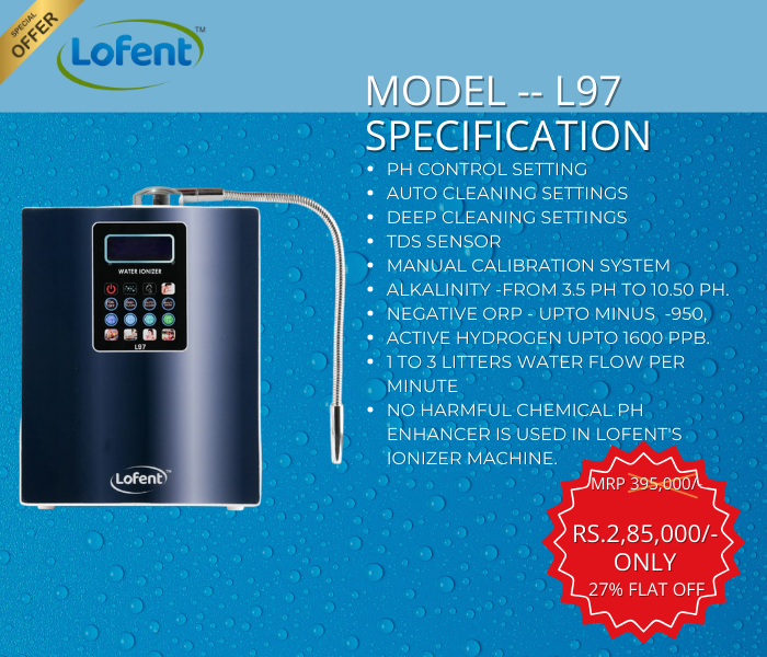 Lofent India Life promotes health and wellness by delivering pure, alkaline, antioxidant, hydrogen rich, microclustered, detoxification, mineral-rich miracle water through advanced ionization and superior filtration technology.